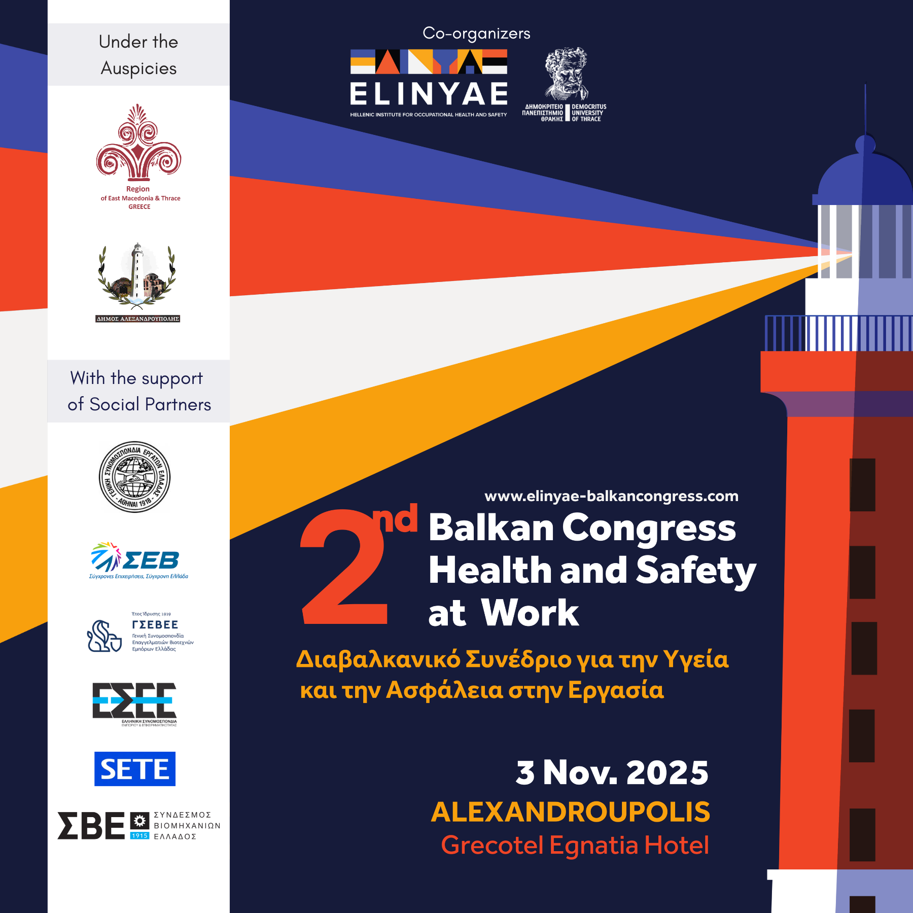 Το ΕΛ.ΙΝ.Υ.Α.Ε. διοργάνωσε το 2ο Διαβαλκανικό Συνέδριο για την Υγεία και την Ασφάλεια στην Εργασία. Το Συνέδριο πραγματοποιήθηκε στην Αλεξανδρούπολη, στο ξενοδοχείο Grecotel Egnatia Hotel, στις 3 Νοεμβρίου 2025.