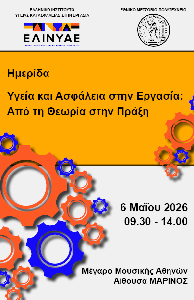 Το ΕΛ.ΙΝ.Υ.Α.Ε. συνδιοργανώνει με το Εθνικό Μετσόβιο Πολυτεχνείο εκδήλωση με θέμα: Υγεία και Ασφάλεια στην Εργασία: Από τη θεωρία στην πράξη. Η εκδήλωση θα πραγματοποιηθεί την Τετάρτη, 6 ΜαΪου 2026 και ώρα 09.30 - 14.00, στο Μέγαρο Μουσικής Αθηνών, αίθουσα ΜΑΡΙΝΟΣ.