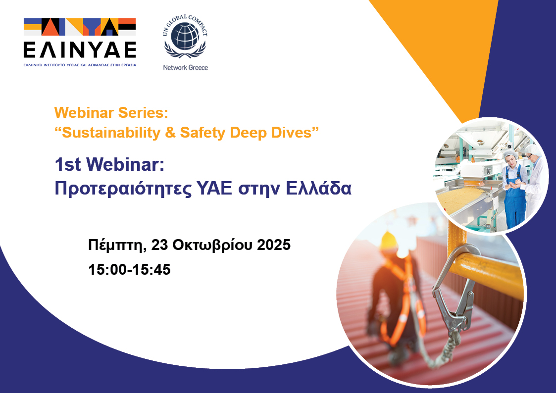 Το ΕΛ.ΙΝ.Υ.Α.Ε. και το UN Global Comapct Greece στο πλαίσιο της συνεργασίας τους ξεκινούν σειρά διαδικτυακών εκδηλώσεων με θέμα: Webinar Series: “Sustainability & Safety Deep Dives”.